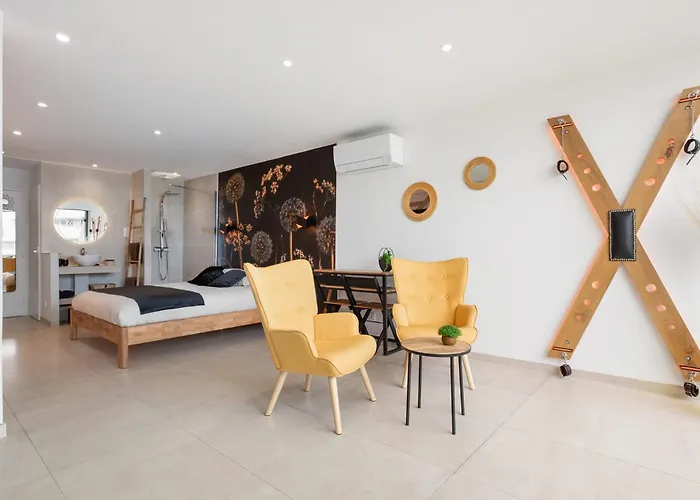 Bu 1 yatak odalı Addict Heliopolis Luxury And Sensual Apartment In Heliopolis dairesi, Plage de la Roquille'a kolay erişim sunmaktadır. Bu denize nazır dairede teras bulunmaktadır.